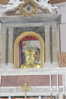LE FOTO RIPRENDONO LA DEPOSIZIONE DEL SANTO PATRONO NELLE NICCHIE POSTE ALL'INTERNO DELLA CAPPELLA ED IN PARTICOLARE, LA SCOMPOSIZIONE DELLA STATUA IN DUE BLOCCHI: IL CRANIO E IL BUSTO.